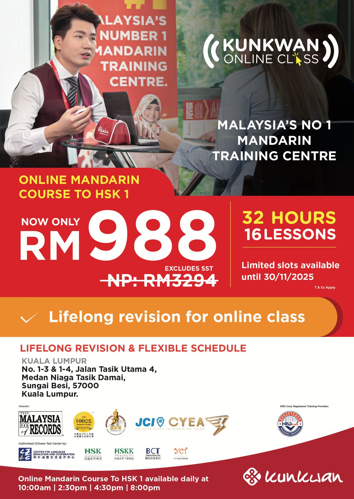 Foundation Mandarin Classes for only RM299 with lifelong revision.